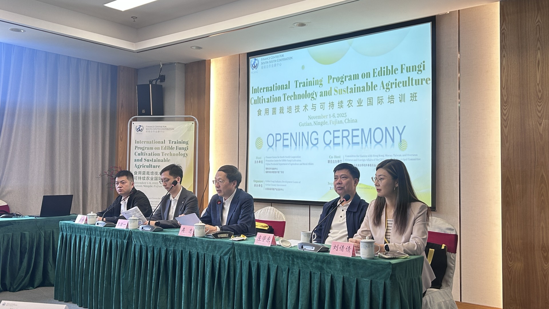 From November 2 to November 6, 2025, the "International Training Program on Edible Fingi Cultivation Technology and Sustainable Agriculture" was successfully held in Gutian County, Ningde City, Fujian Province. This training program was hosted by the Finance Center for South-South Cooperation (FCSSC), and the Promotion Center for Edible Fungi Cultivation, Fujian Provincial Department of Agriculture and Rural Affairs. It is co-hosted by Committee for Liaison with Hong Kong, Macao, Taiwan, and Overseas Chinese and Foreign Affairs of CPPCC Ningde Municipal Committe, and organized by Edible Fungi Industry Development Center of Gutian County Governemnt. It also gained significant support from Chongho Bridge and the Association of Edible Fungi in Gutian.