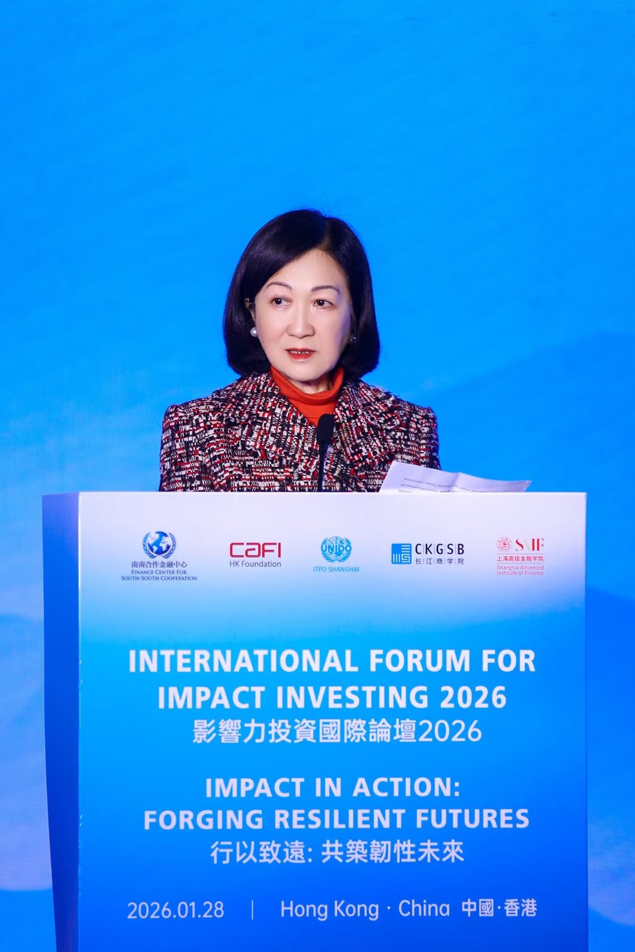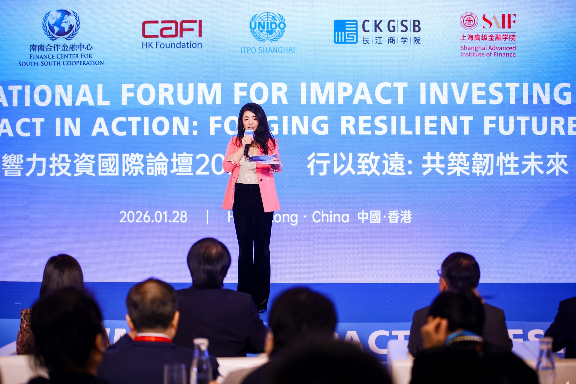 On January 28, 2026, the "2026 International Forum for Impact Investing" was grandly inaugurated in Hong Kong. This forum was jointly host by the Finance Center for South-South Cooperation (FCSSC), the Chinese Academy of Financial Inclusion Hong Kong Foundation (CAFI HK), the United Nations Industrial Development Organization Investment and Technology Promotion Office Shanghai (UNIDO ITPO Shanghai), the Cheung Kong Graduate School of Business (CKGSB), and the Shanghai Advanced Institute of Finance (SAIF).With the theme "Impact in Action: Forging Resilient Futures", the forum gathered nearly 300 industry elites from around the globe to engage in in-depth discussions on topics such as the financing gap for sustainable development, cross-border collaboration, corporate expansion, and technological innovation. The aim is to create a diverse and open platform for communication and cooperation, driving the transition of impact investing from conceptual advocacy to scalable practice.